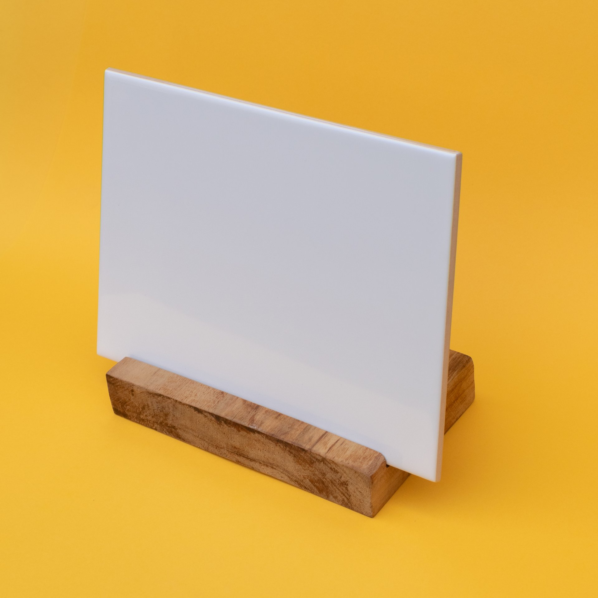 Impressão de ilustrações, fotografias, ou outros tipos de imagem, num azulejo de aproximadamente 20x15 cm, com a superfície e arestas uniformes.